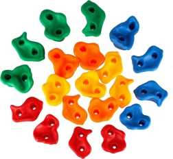Komplet barvnih oprimkov je odlična alternativa igrišču in navdih za aktiven življenjski slog. S svojo plezalno steno ne podpirate samo fizičnega razvoja otrok, ampak tudi njihovo kreativnost in veselje do gibanja.