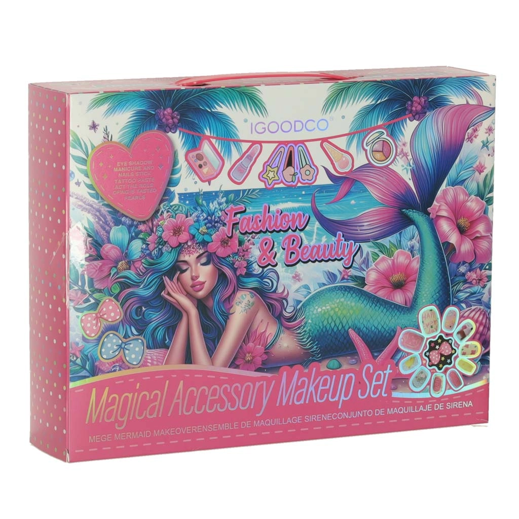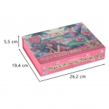 Ta čarobni kovček, poln barv, ponuja varen prostor za kreativno igro in razvoj spretnosti. Zasnovan je za spodbujanje kreativnosti in estetskega čuta otrok. Vsebuje kozmetične izdelke, ki so lahki, enostavno odstranjljivi in hipoalergeni.