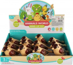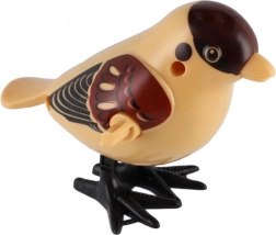 Ljubka plastična ptica na ključ, ki po navijanju skače po mizi ali tleh in prinaša veselje otrokom, ki obožujejo živali in gibanje.