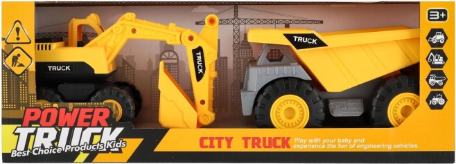 Odlična komplet za male graditelje! Dve trpežni plastični gradbeni vozili s prostim tekom, ki se popolnoma podata v vsako zbirko. Zlahka se premikata po katerikoli površini – samo rahlo ju potisnite in peljeta.