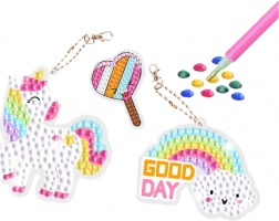 Šablone in mesta za lepljenje diamantov so označena – ni potrebno imeti posebnih veščin za ustvarjanje izvirnih nalepk in ključnih obeskov. To je sproščujoča dejavnost, ki razvija koncentracijo, potrpežljivost in ročne spretnosti. Idealna tako za individualno ustvarjanje kot za zabavo z družino.