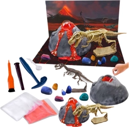 Skrbno izbrani materiali in podrobna navodila korak za korakom zagotavljajo, da otroci lahko s samostojnostjo in varno zaključijo vse faze igre – od kemijskega eksperimenta do sestavljanja okostja dinozavra. Odlično darilo za vse mlade radovedneže!