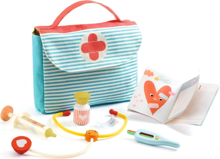 Zdravniški kovček DJECO je idealno darilo za male navdušence nad medicino. Vsebuje vse potrebno za igro zdravnika: termometer, ki menja barvo, stetoskop, injekcijsko brizgo, stekleničko za zdravila, povoj in zdravstveno kartico.