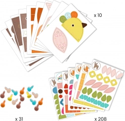 Vnesite ustvarjalnost v otroški svet s tem ustvarjalnim kompletom z nalepkami znamke DJECO! Po priloženih predlogah nalepite nalepke in dokončajte živalice. Po končanem delu jih sestavite in ustvarite impresivne 3D figurice: medved (50 cm), lisica (40 cm) in ptiček (28 cm).