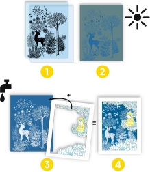 S tem fascinantnim kompletom lahko postanete ustvarjalec edinstvenih vzorcev, ki se pojavijo na papirju pod vplivom svetlobe. Dovolj je, da papir izpostavite sončni svetlobi in opazujete, kako se na temnem ozadju rišejo senčne podobe.