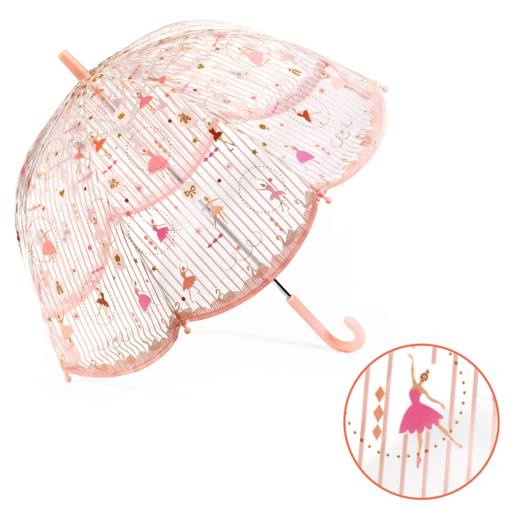 Stajliš in praktičen dežnik z motivom baletke, ki navduši ne le z lepimi ilustracijami, temveč tudi s svojo funkcionalnostjo. Prosojna izvedba otroku omogoča, da vidi, kam gre, varnostni sistem pa zagotavlja udobno odpiranje brez priprtja prstov.