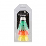 Barvne badminton žogice/košarice so idealna izbira za zabavno in dinamično igro. Set vsebuje tri žogice v različnih barvah za večjo privlačnost igre.