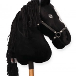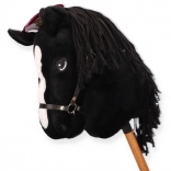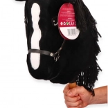 Črna plišasta glava z grivo, belo zvezdico na čelu in dekorativno uzdo daje konjičku avtentičen videz, ki otroke takoj potegne v igro.