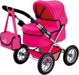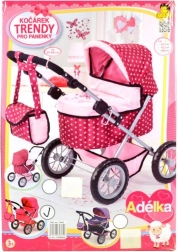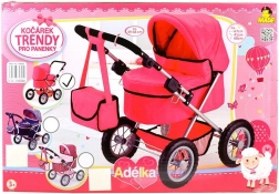Globok voziček v modernem dizajnu v rožnati barvi, idealen za punčke do 42 cm, vključno s punčko Adélko. Enostavno zložljiv in razstavljiv za udobne izlete.