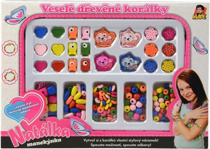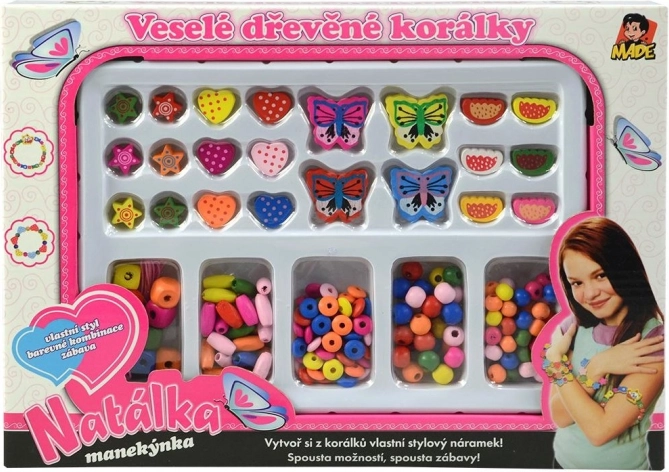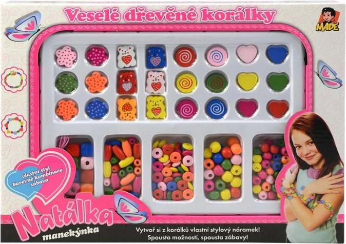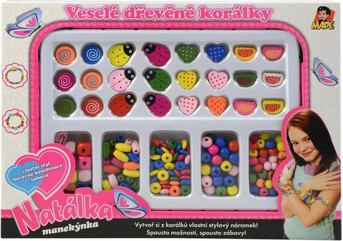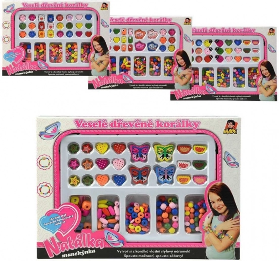 Komplet kroglic Natalka za male gospodične. Ustvarjajte izvirne zapestnice iz kroglic različnih barv in oblik. Primerno od 3. leta.