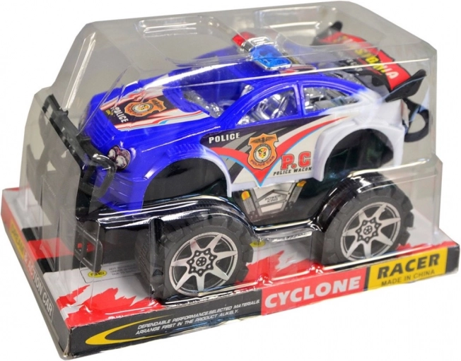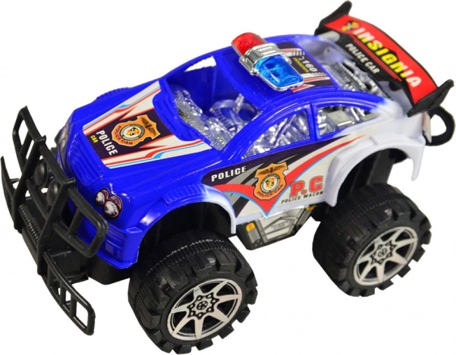 Policijski terenski avto za otroke od 3 let, na voljo v dveh barvnih različicah. Plastičen material z velikimi kolesi.
