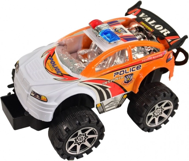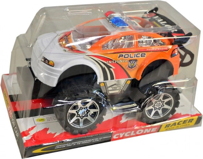 Policijski terenski avto, idealna igrača za male pustolovce. Odlikuje ga plastičen material in velika kolesa, ki premagajo tudi neraven teren.
