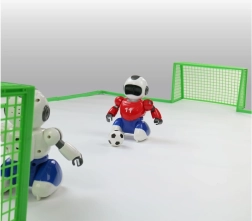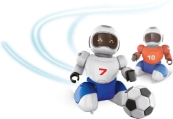 Doživite vznemirjenje nogometne tekme z robofudbalom, kjer se dva robota spopadeta v spretnosti usmerjanja žoge v nasprotnikov gol. Vsak robot se upravlja z lastnim daljinskim upravljalnikom, kar zagotavlja maksimalen nadzor nad njihovim gibanjem in akcijami.