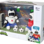 Ta igrača je idealna za otroke od 5. leta dalje in je izdelana iz kakovostne plastike. V paketu so 2 robota, 2 upravljalnika, 2 gol(a) z ograjo igrišča, 2 USB polnilna kabla in navodila za uporabo. Višina vsakega robota je 16 cm. Dimenzije pakiranja so 36 × 24 × 19 cm.