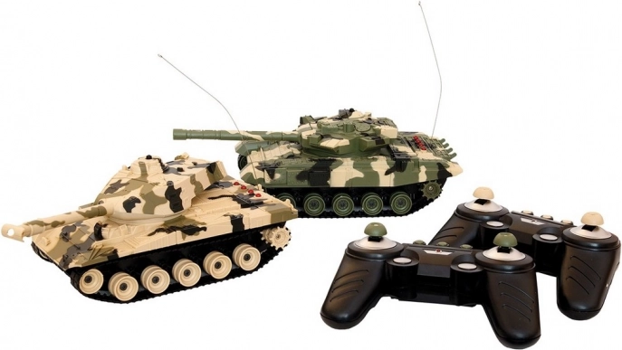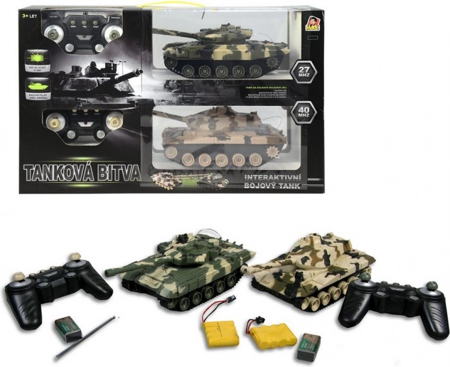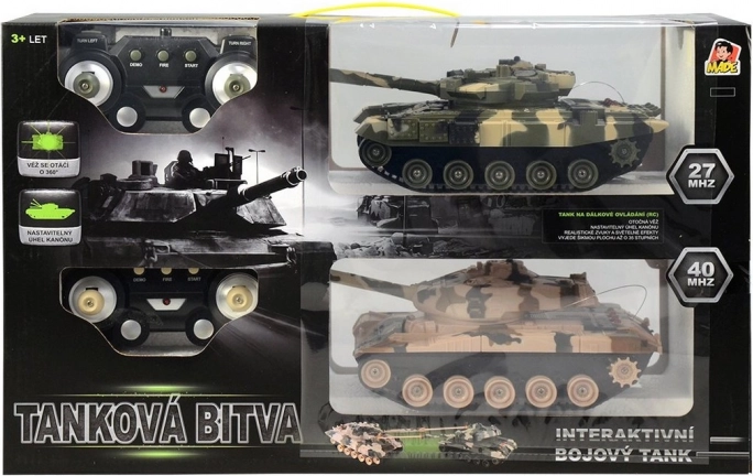 Ta komplet tankov ponuja bogato interaktivno zabavo z realističnimi bojnimi funkcijami. Frekvenca 27/40 MHz zagotavlja zanesljivo upravljanje do razdalje 15 m. Vsak tank je opremljen s topovsko cevjo z infrardečimi diodami za zaznavanje zadetkov. Krmilniki imajo sprožilec, ki zagotavlja pristno bojno izkušnjo. Ob zadetku tanka se zasliši zvok eksplozije, diode na kupoli tanka pa odštevajo »življenja«.