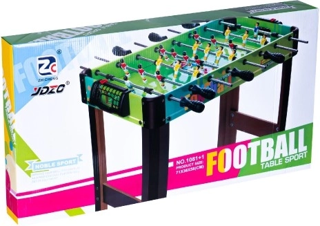 Ta namizni nogomet je idealna izbira za družinsko zabavo in prijateljske dvoboje. Zaradi kompaktnih mer 71 × 36 cm ga zlahka postavite na običajno mizo, hkrati pa ohranja elemente velikega nogometa – kovinske drogove z vrtenjem za 360°, vratarje, števec rezultatov in tekoče gibanje igralcev.