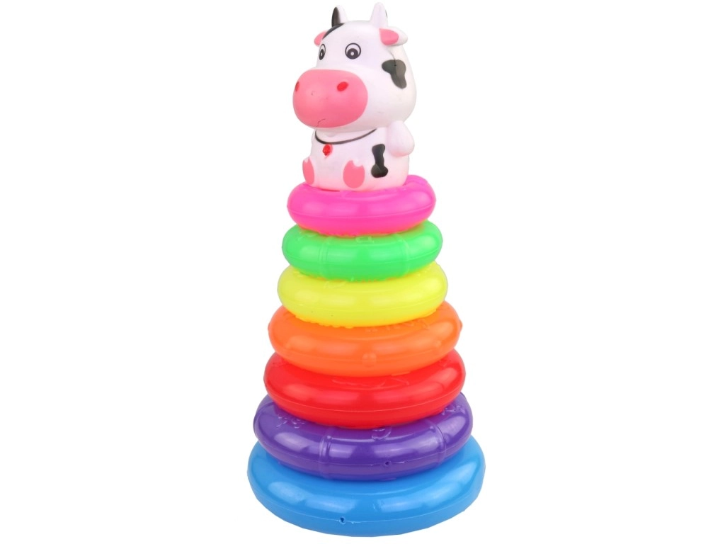 Ta zabavna piramida v obliki kravičke je idealna za otroke od treh let. Pomaga razvijati motoriko in ustvarjalnost vašega otroka.