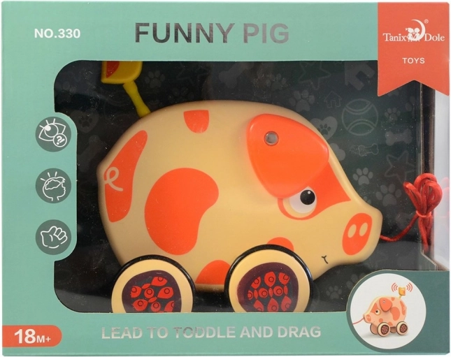 Prašiček na vrvici je zabavna igrača za otroke, ki prinaša veliko veselja. Dovolj je, da ga vlečete za vrvico in prašiček bo sledil, pri čemer bo igro popestril z veselim migetanjem repka.