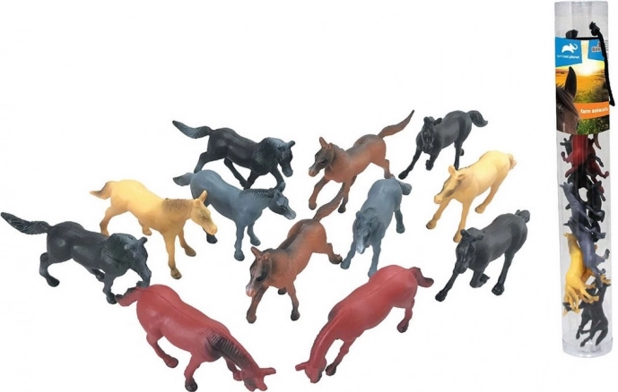 Živalice v tubi - Konji: 12 figur konjev velikosti 6–8 cm. Okolju prijazna igrača z AR aplikacijo za otroke 3+.