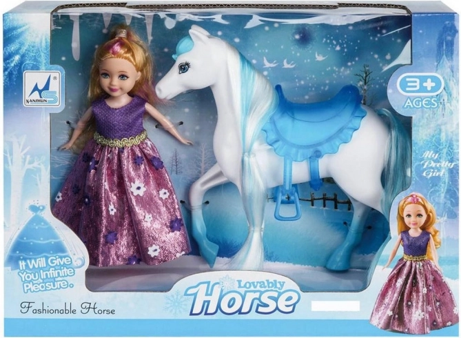 Uživajte v urah neskončne zabave s to čudovito punčko in konjem. Izdelano iz kakovostne plastike, ta set je zasnovan tako, da prenese tudi zahtevno otroško igro: