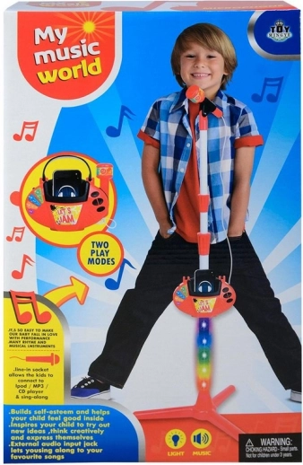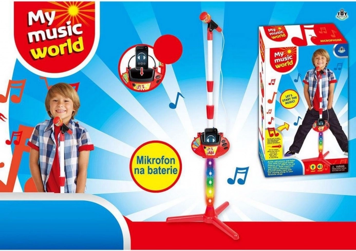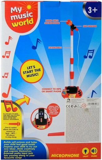 Postanite zvezda odra z našim otroškim mikrofonom. Na krmilno enoto stojala priključite MP3 predvajalnik ali pametni mobilni telefon in pojte skupaj z najljubšimi pesmimi. Mikrofon napajajo 3x AA 1,5 V baterije in je primeren za otroke od 3 let.