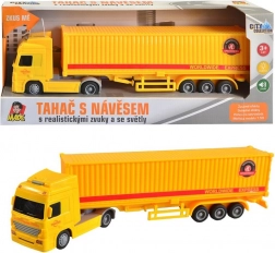 Tovornjak s kontejnerjem na vztrajnik je zabavna igrača za otroke, ki s svetlobnimi in zvočnimi učinki spodbuja otroško domišljijo.
