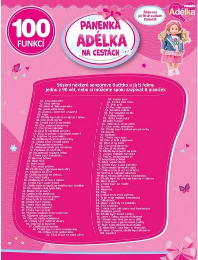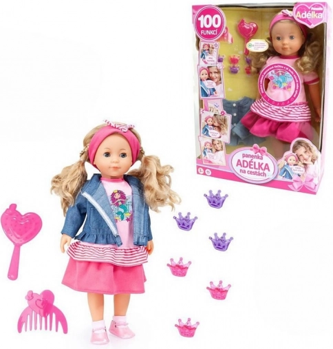 Odkrijte čar materinske vloge s punčko Adélka. Ta edinstvena punčka je opremljena s 90 češkimi stavki, kot sta "mami, povej mi pravljico" ali "Imam te rada, mami!", ki jih ta interaktivna igrača izreka. Poleg tega zapoje osem tradicionalnih čeških pesmi, kot sta "Holka modrooká" ali "Skákal pes" in se zna tudi smejati. Z vsakim pritiskom na izbrano mesto otroci doživijo ure avanture.