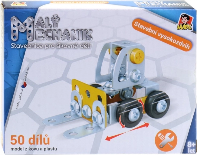 Gradbena tehnika iz zbirke Mali mehanik je idealna igrača za otroke od 8 let dalje. S to kovinsko konstrukcijsko sestavljanko lahko mali tehniki gradijo in razvijajo svoje sposobnosti. Igrača je odlična za razvoj fine motorike in ustvarjalnosti.