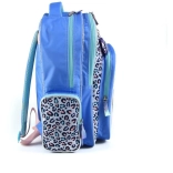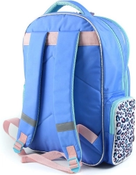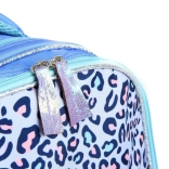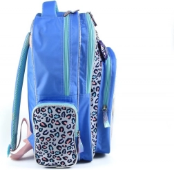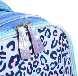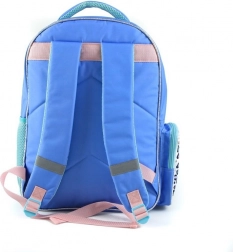 Nahrbtnik je zasnovan z dominantnimi modro-vijoličnimi odtenki in prikupnimi vzorci, kar ga naredi igriv in priljubljen dodatek za otroke.