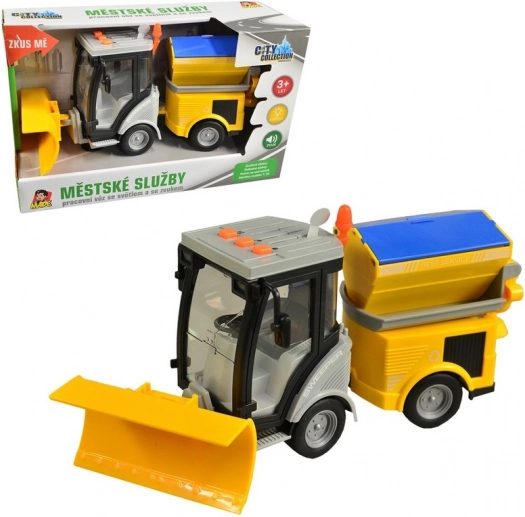Uživajte v zabavi z našim plužilnim vozilom, opremljenim z svetlobnimi in zvočnimi učinki in pogonom na vztrajnik. Odlična igrača za otroke od 3. leta naprej.