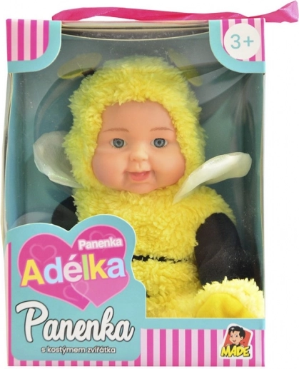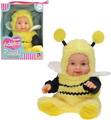 Ta lepa punčka je oblekla kostum čebelice, ki navdušuje s svojo prisrčnostjo in barvitostjo. Odlično se poda v svet iger vaše hčerke, kjer jo bo zabavala in spodbujala njeno domišljijo.