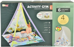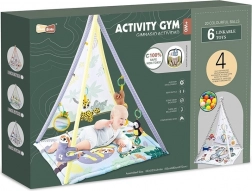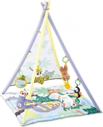 Ta podloga s šotorom v kontrastnih barvah navduši ne le z estetiko, temveč tudi s funkcionalnostjo. Namenjena je zabavi in učenju otrok ter je opremljena z glasbenimi in drugimi dodatki: