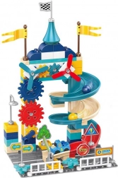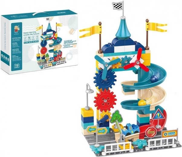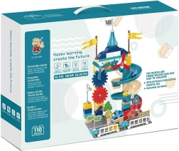 Ta komplet kock s kroglastim toboganom vsebuje 110 kosov, ki jih otroci lahko povezujejo in kombinirajo po svoji lastni domišljiji. Igrača je izdelana iz kakovostne plastike, ki je varna in vzdržljiva. Kocke se enostavno sestavljajo in razdirajo, kar olajša njihovo pospravljanje in shranjevanje v priloženi škatli.