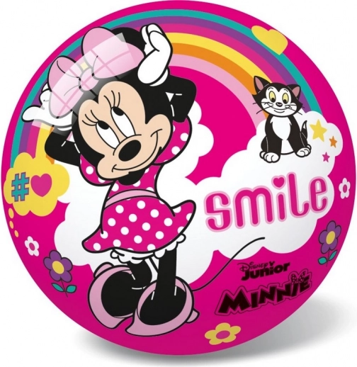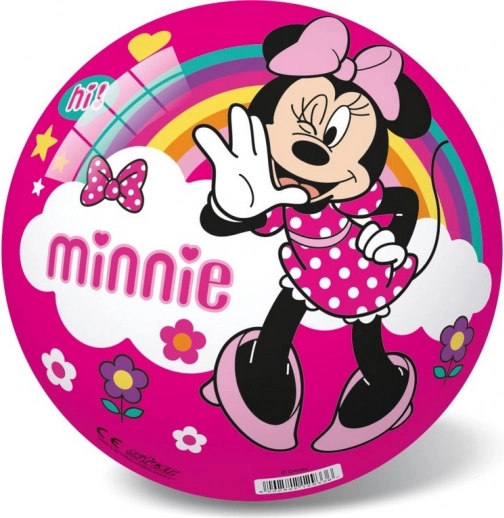 Rožnata žoga z motivom Minnie, idealna za otroke, premer 14 cm, podpira gibalne spretnosti, primerna od 3 let naprej.