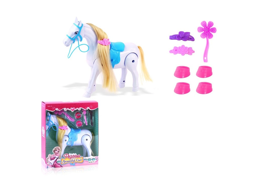 Ta očarljiva igrača v obliki konja s pripomočki otrokom ponuja veliko možnosti za igro. Zahvaljujoč grivi za česanje in priloženemu glavniku se lahko otroci znova in znova igrajo.