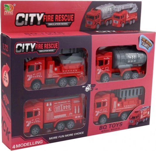 Gasilski avto na povratni pogon za otroke 3+. Kompakten, plastičen, v privlačnem window boxu.