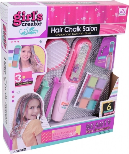 Odkrijte ustvarjalni svet frizerskega studia s tem izjemnim setom za barvanje in okraševanje las! Izvirne ideje in barvne kombinacije v enem paketu. Idealno za male modne navdušence od 5 let dalje.