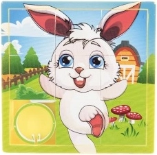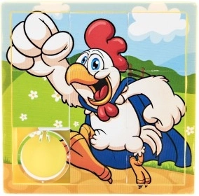 Ta drsničenka uganka je zabavna igrača, ki otroke zabava ure in ure. Sestavljena je iz osmih enakih kosov s stranskimi kanali, ki tvorijo končno sliko. Kosi so enostavni za premikanje in uokvirjeni tako, da ne padajo ven. Okvir vsebuje mini sliko končne slike, ki služi kot predloga za namestitev kosov.