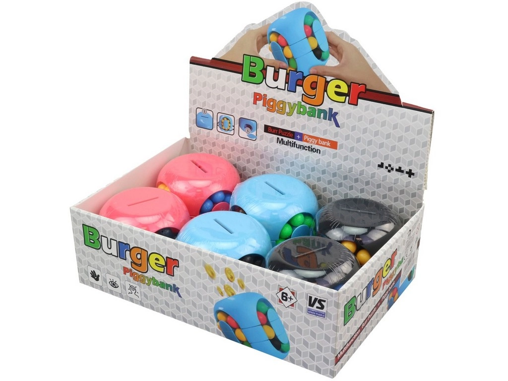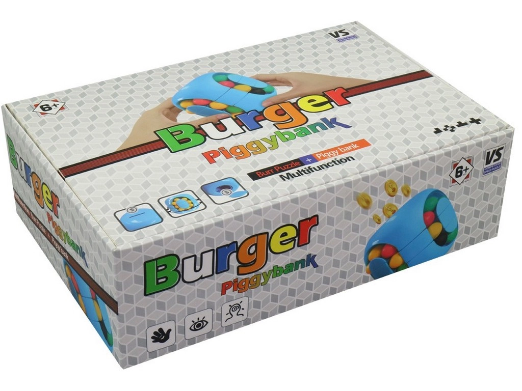 Magična kocka Hamburger hranilnik je zabavna igrača za otroke, stare 3 leta in več. Ta hranilnik v obliki hamburgerja prinaša ure ustvarjalne igre.