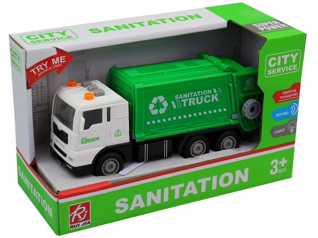 Smetiščno vozilo z realističnimi zvoki in lučmi zagotavlja ure zabave za otroke. Poganja ga vztrajnik, ponuja dinamično igro in je idealno za dečke, ki imajo radi interaktivne igrače.