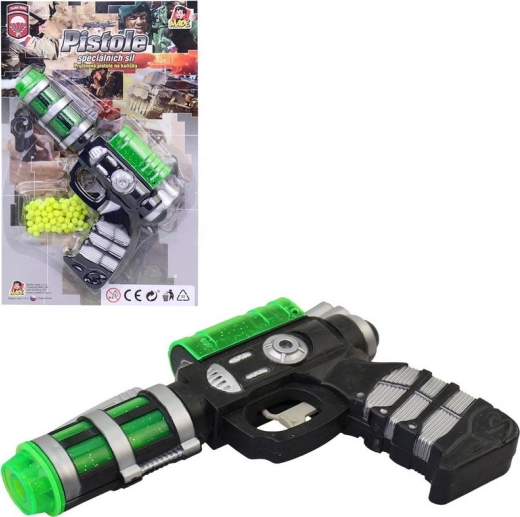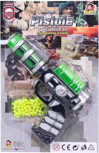 Ta pistola na kroglice je odlična izbira za male fante, ki imajo radi akcijske igre. Zaradi svoje velikosti 18 cm je enostavna za držanje in je izdelana iz trpežne plastike, kar zagotavlja varnost in dolgo življenjsko dobo. Igrača je pakirana v praktični embalaži vrste blister card, ki vsebuje tudi 100 nadomestnih kroglic za neskončno zabavo. Namenjeno otrokom od 3 let dalje in spodbuja njihovo ustvarjalnost ter domišljijo.