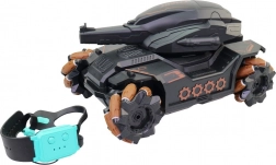 Poleg tega z drugim gibljivim upravljalnikom, ki ga lahko pritrdite na roko, in po parjenju s tankom, lahko tank upravljate z gibanjem roke. Upravljalnik ponuja tri vrste gibanja ob strani, zaradi česar je tank odlično obvladljiv tudi v najbolj zahtevnih situacijah. Podajte se v akcijo s tankom, ki ima dimenzije 28 x 16 x 16 cm in je izdelan iz trpežne plastike, kar ga naredi idealnega za zunanje igranje.