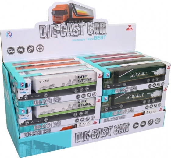 Ta kovinski tovornjak je zasnovan za otroke od 3. leta naprej in je popoln za fante, ki obožujejo akcijske igre z avtomobilčki. Zaradi svoje robustne plastične konstrukcije je igrača trpežna, poleg tega pa ima vsak izmed 24 kosov v paketu podroben površinski detajl, ki daje realističen videz. Igrača je dobavljena v razstavni škatli, kar olajša njeno shranjevanje in predstavitev.