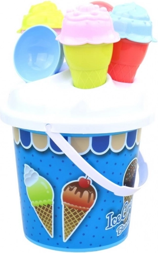 Del seta je vedro z ročajem za enostavno uporabo in prenašanje na plaži ali peskovniku. Vedro je okrašeno z efektnimi grafikami sladoleda.