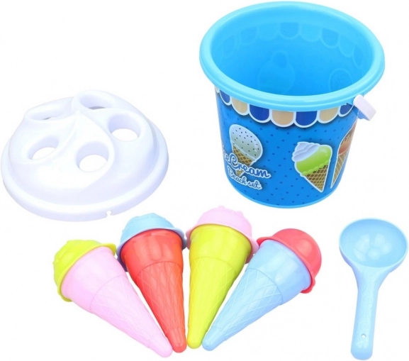 Komplet vsebuje več kornetov v različnih barvah in praktično plastično vedro za enostavno prenašanje in shranjevanje vseh delov v mreži. Zaradi kakovostnega plastičnega materiala je izdelek vzdržljiv in dolgotrajen, kar zagotavlja ure zabave na plaži.