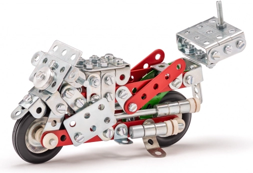 Komplet Merkur Motorno kolo ponuja možnost sestavljanja desetih različnih modelov motokoles in drugih vozil. Ta komplet spodbuja otroško ustvarjalnost, logično razmišljanje in fino motoriko. Vsak model ponuja novo konstruktorsko izkušnjo in omogoča neomejeno zabavo.