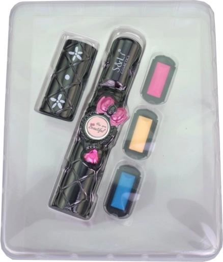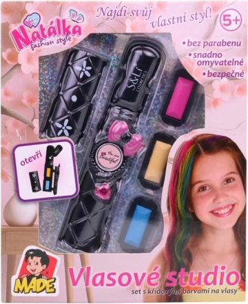 Odkrijte čar ustvarjanja novih stilov z našim Lasnim studiem! Ta set vsebuje vse, kar potrebujete za enostavno barvanje lasnih pramenov. Z aplikatorjem je menjava barve igrača, le vstavite lase v napravo in povlecite vzdolž celotne dolžine. Ta igrača je zasnovana posebej za dekleta, ki želijo eksperimentirati z modnimi stili.
