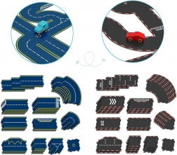 Dvostranska dirkalna steza Vilacity je izdelana iz lahkega, a trdnega kartona, ki omogoča enostavno zlaganje in večkratno sestavljanje. To naravno spodbuja razvoj koordinacije gibov in fine motorike. Pakiranje vsebuje dva lesena avtomobilčka, ki jih lahko otroci vodijo, se z njima dirkajo ali ustvarjajo lastne prometne zgodbe. Med vožnjo avtomobilčkov si otrok osvoji osnovna načela sodelovanja ter vadi natančnost in zbranost.