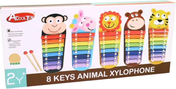 Del paketa sta dve leseni paličici, ki omogočata udobno igranje na ksilofon. Ksilofon je lahek in enostaven za prenašanje, zato je odličen spremljevalec tako na poti kot doma.