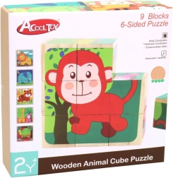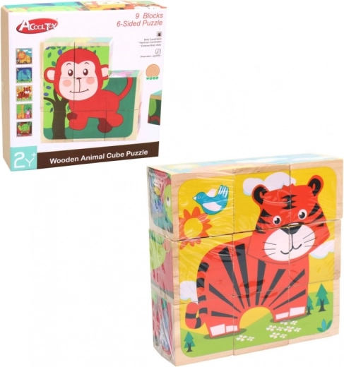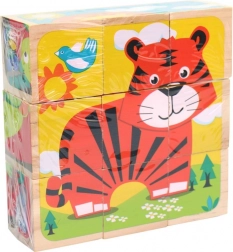 Lesene kocke z motivi živali so idealna igrača za majhne otroke. Ta set omogoča ustvarjanje različnih podob z živalmi, kar prinaša zabavo in razvija ustvarjalnost.